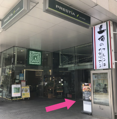 ③直進すると、1階が紀伊国屋 俺のフレンチ・イタリアンの入ったAOビルがございます。