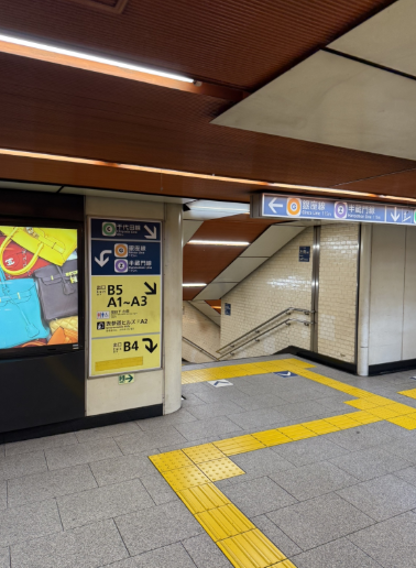①改札を出たらB4出口に向かいます。