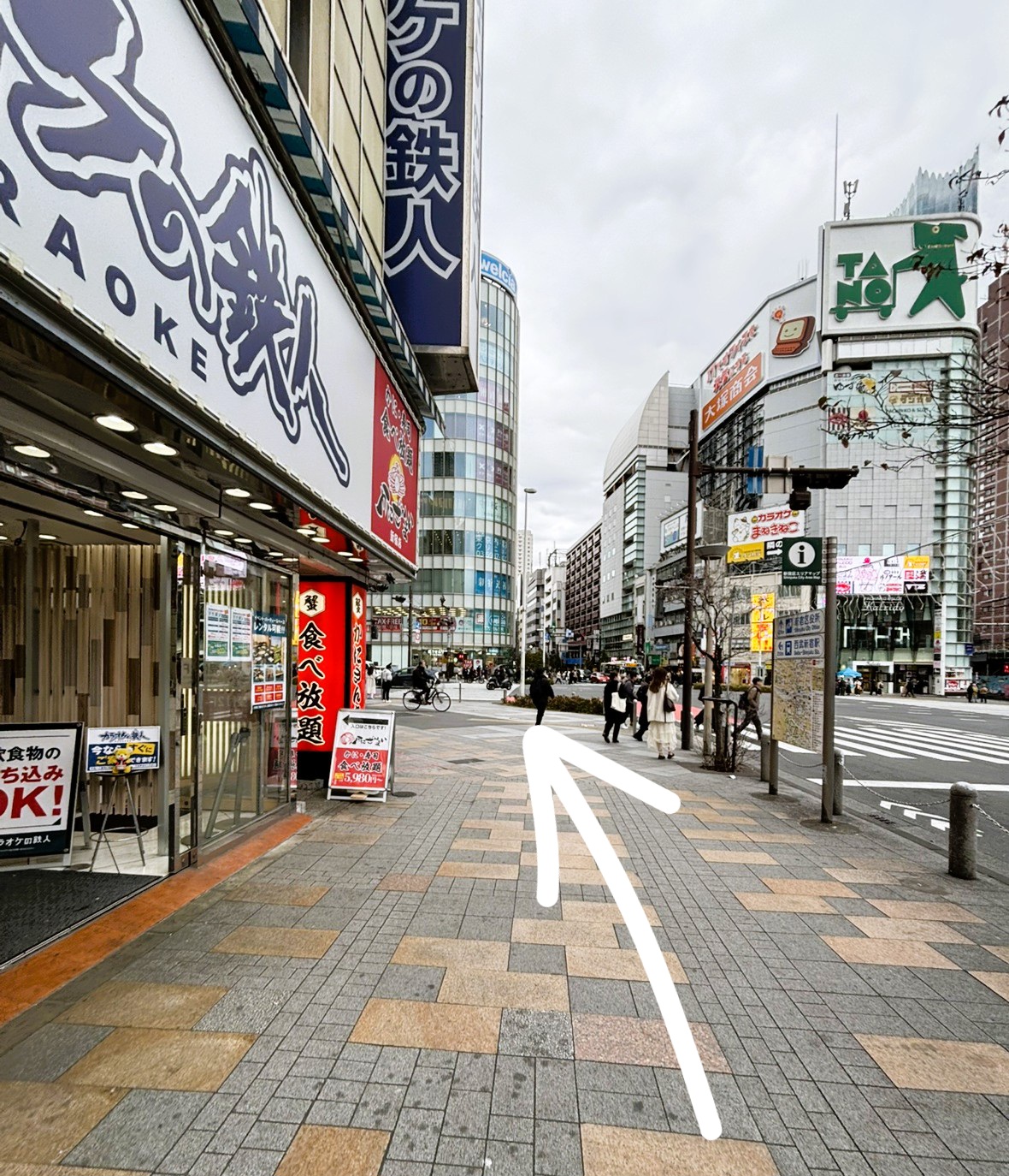丸の内西改札を出て小田急百貨店方面に進みます。