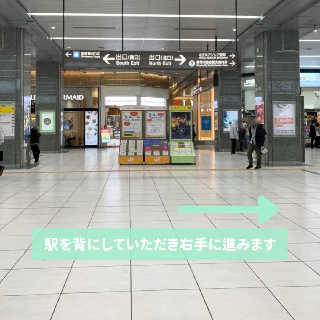 ①JR「静岡駅」改札を出て右手に進んで下さい