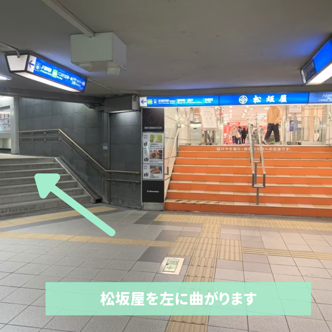 ③松坂屋方面まで進んで頂き、松坂屋を左に曲がります