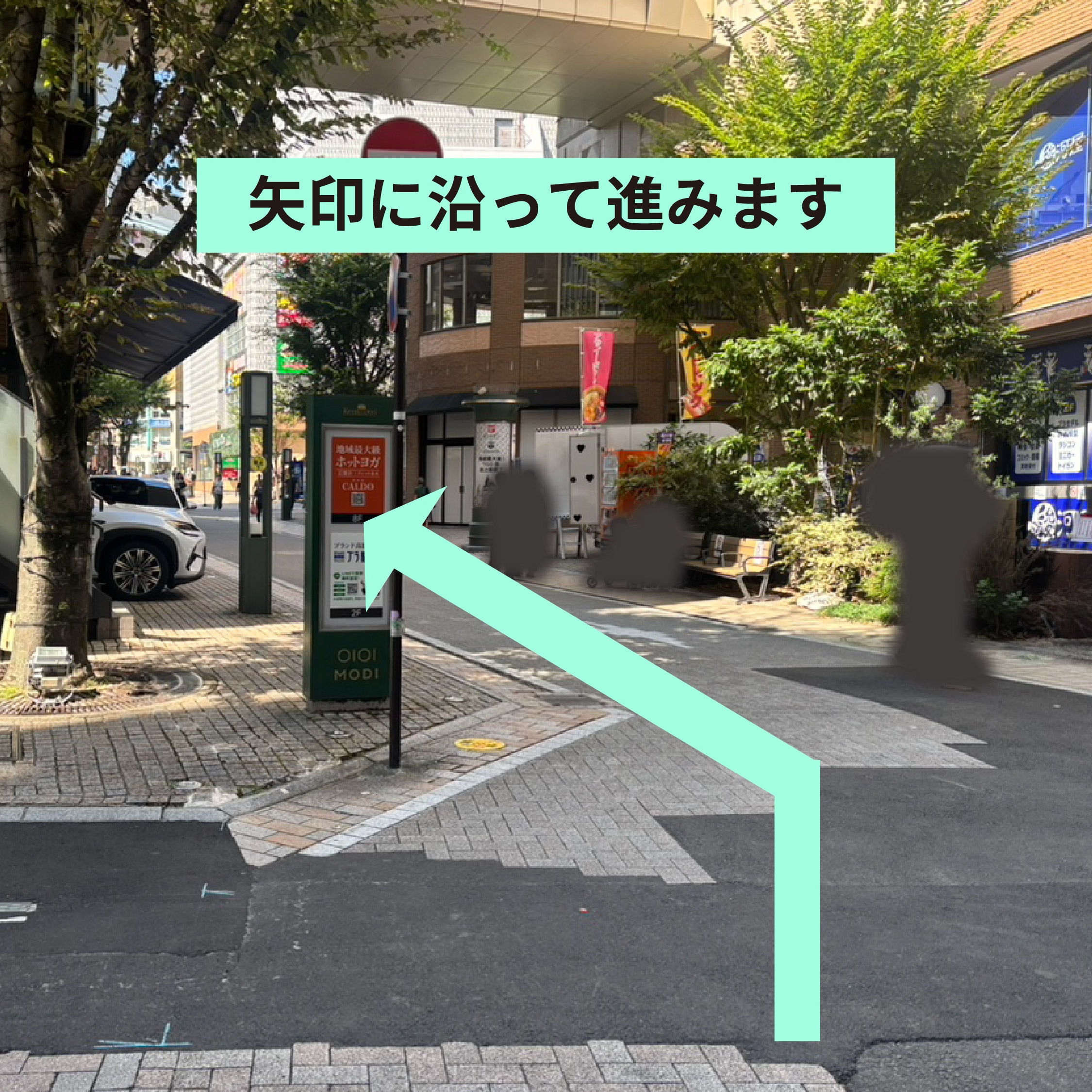 ④信号を渡り、けやきプラザと深尾ビルの間の道を進みます