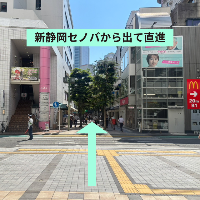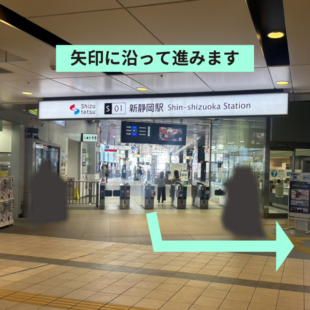 ①【新静岡駅】の改札を出て新静岡セノバ方面に進みます