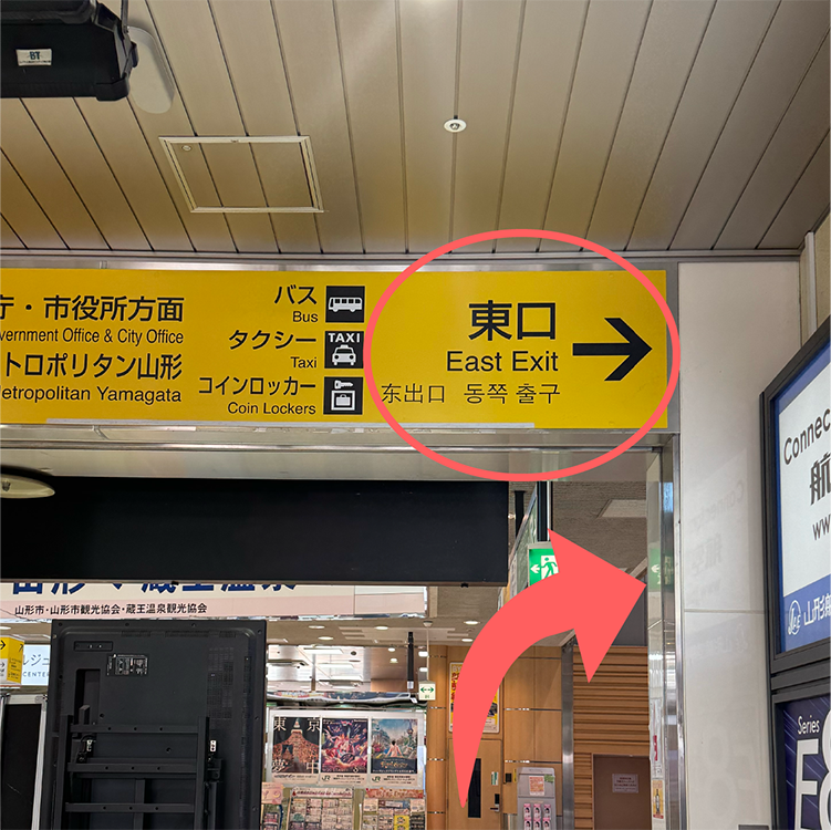 ①JR山形駅の改札口を出たら
