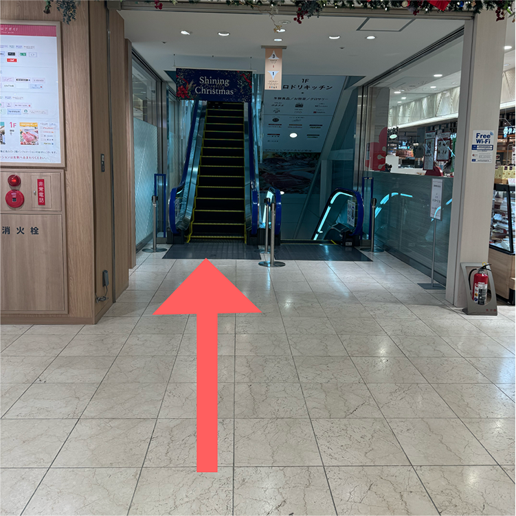 ⑤中に入り、正面のエスカレーターで5階まで上がります