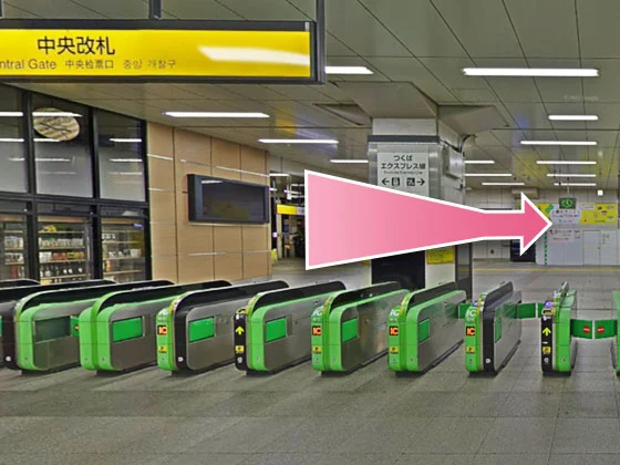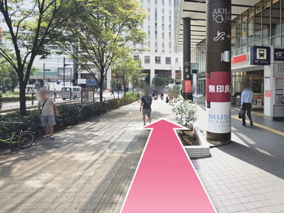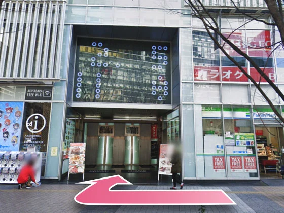 ①秋葉原駅の中央改札口から出て右に曲がってください。