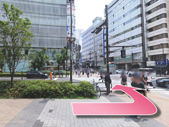 ③しばらく進むと横断歩道があるので、左側に渡ってください。