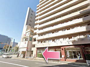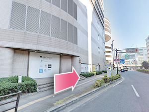⑨しばらく進んだ先にある右手に見えるビルが、当院が入居する塚本千葉第三ビルディングです。
