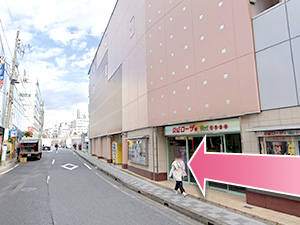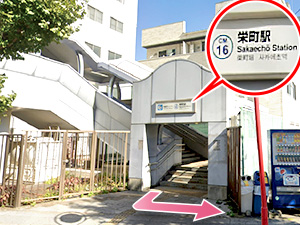 ①千葉都市モノレール 栄町駅1番出口から出て左に曲がります。