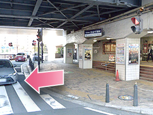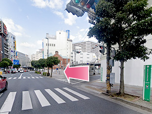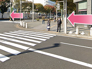 ②目の前の横断歩道をまっすぐ渡ってください。