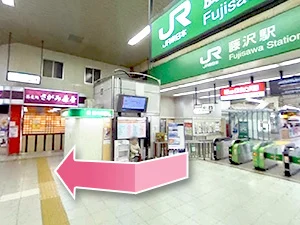 ①小田急線 藤沢駅を出て右へ進みます。