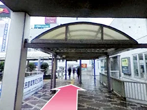 ④南口を出て右に曲がってください。