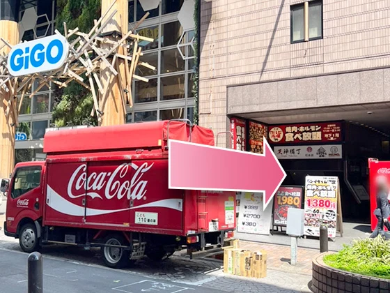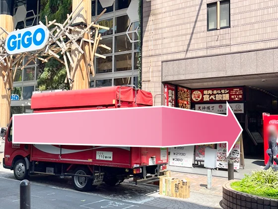 ④少し進んだ先のGiGOの大きいモニュメントがあるビルが、