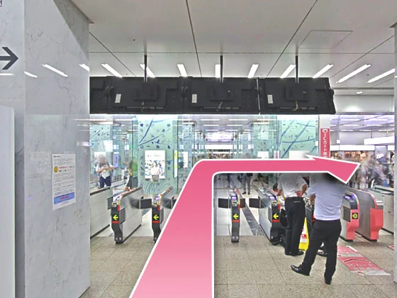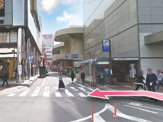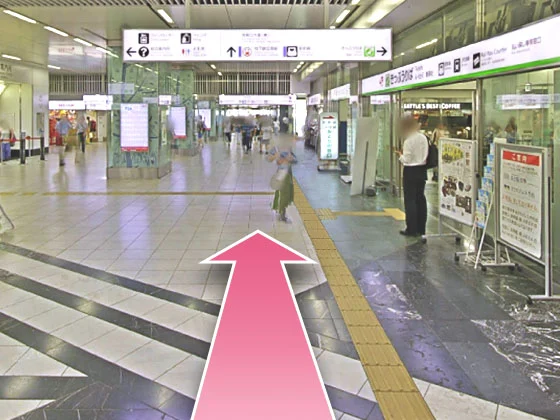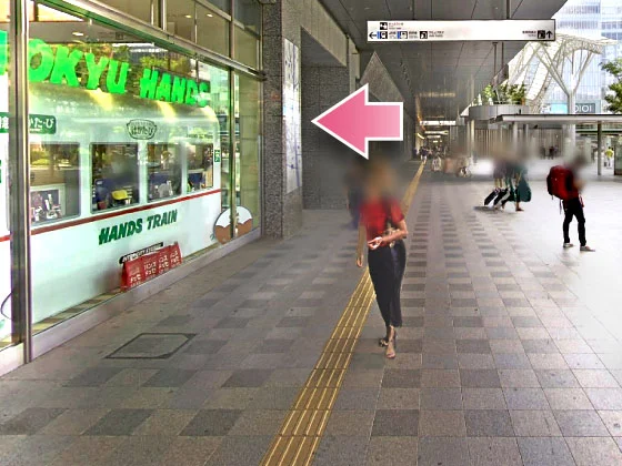②東急ハンズの先を左に曲がって、駅構内に入ってください。