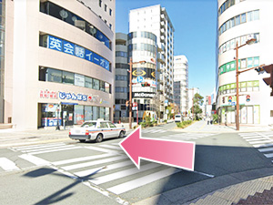 ②外に出たら交差点があるので横断歩道をまっすぐ渡ってください。