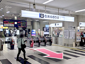 ①在来線改札口を出ます。