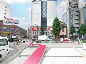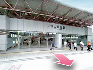 ①JR金山駅の南口から出てまっすぐ進みます。