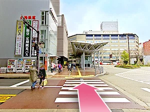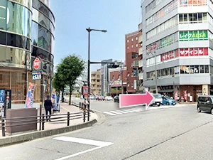 ⑨横断歩道を渡った先にあるビルが当クリニックの入居するセントラルビルになります。