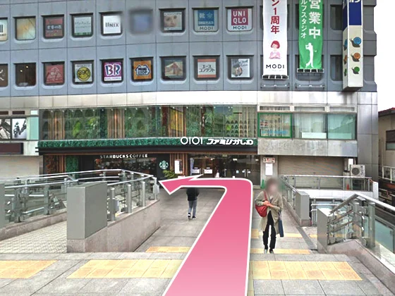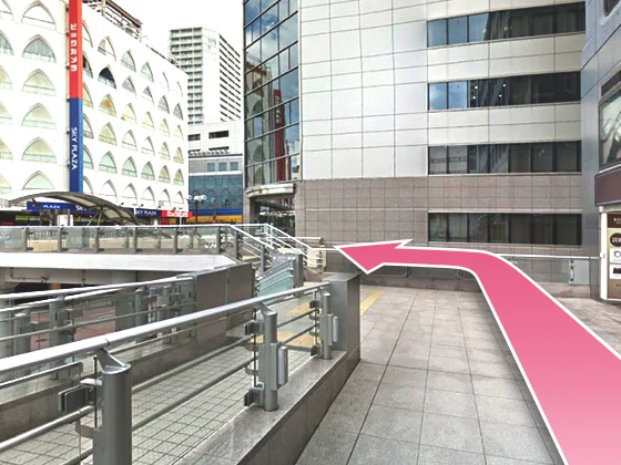 ⑥階段を降りた先のビルが、当クリニックの入居する柏ちば興銀ビルです。