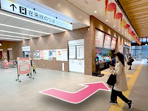 ①JR長崎駅在来線改札口を抜けて左へ進みます。