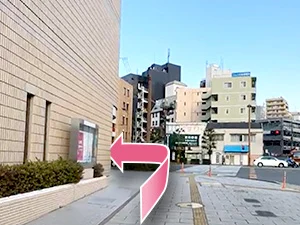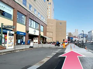 ④正面の横断歩道を渡らずに左へ曲がります。