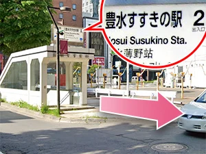 ①豊水すすきの駅2番出口から地上に出てまっすぐ進みます。