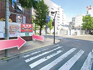 ④マツモトキヨシの左手にある横断歩道を渡ってください。