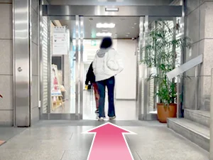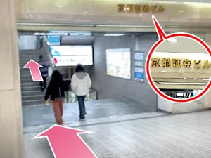 ⑦階段を上った先にある自動ドアが当クリニックの入居する京都証券ビルの入口です。