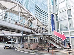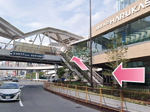 ③南口の右手に阿倍野歩道橋がありますので、階段を上がってください。