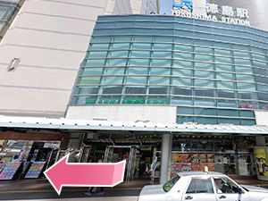 ①JR徳島駅から出て右へ進みます。
