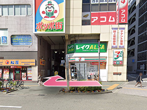④セブンイレブンの角を曲がってポッポ街に入ってください。