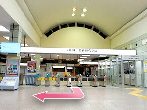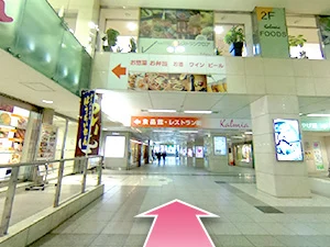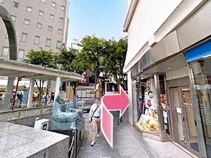 ①JR豊橋駅の改札口から出て右に曲がります。