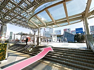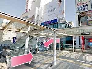 ③東口から出て目の前の階段を上ります。