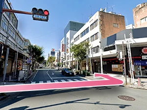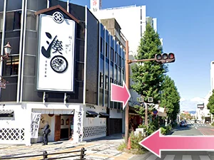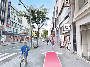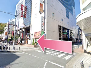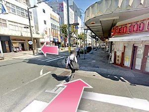 ④正面の横断歩道を渡って左に曲がってください。