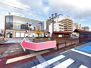 ①豊橋鉄道市内線 駅前大通駅の停留所から出て横断歩道を渡ります。