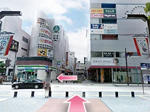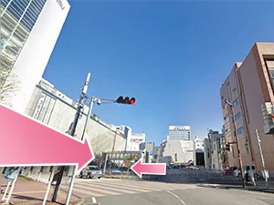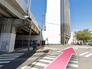 ③横断歩道を渡って右手に見えるビルが当クリニックが入居することぶきビルです。