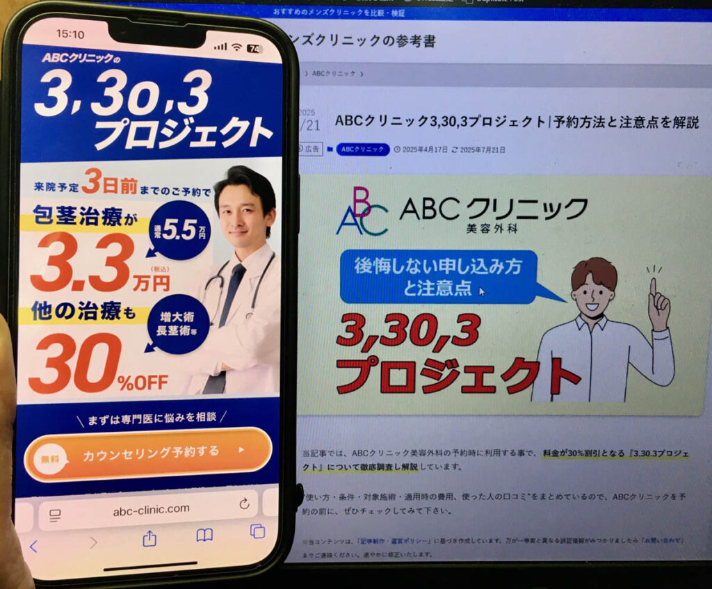 ABCクリニックの3.30.3プロジェクトが適用されるのは、主にABCクリニックが提供している包茎治療や増大術などの男性器向け施術です。