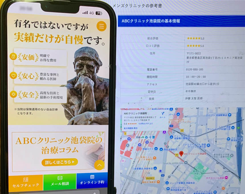 ABCクリニック池袋院近くのメンズクリニック8院の評価内容です。