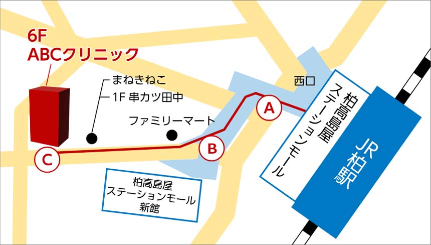 ABCクリニック 柏院にJR柏駅から行くまでの流れ