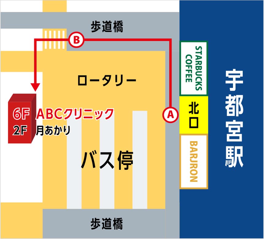 ABCクリニック宇都宮院とJR宇都宮駅周辺に有るクリニック4院の口コミを比較