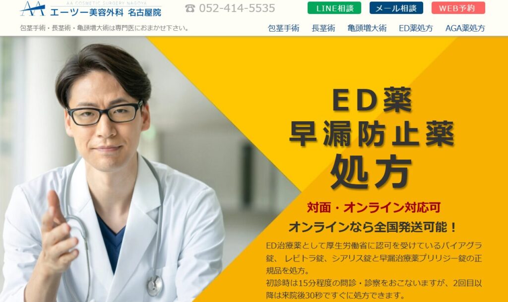 名古屋でED治療を検討する場合でも、移動や待ち時間を減らしながら相談できるため、「通院の負担を抑えつつ継続しやすい治療環境」を重視する方に向いています。