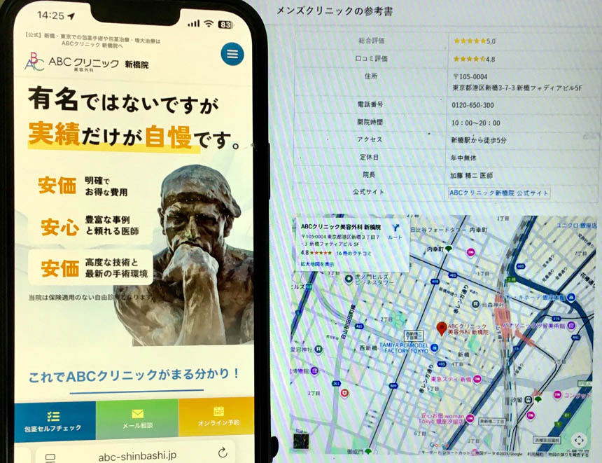 ABCクリニックは全国25院で15万件以上(年間1,000件以上)の症例実績がある点も安心で、「新橋院」では泌尿器科が専門の院長情報も開示されています。