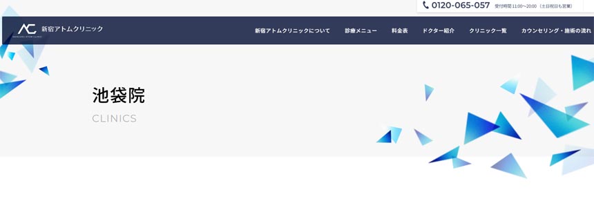 新宿アトムクリニックは、全国に13院ある包茎手術実績20,000件以上のメンズクリニックで、池袋院は池袋駅から徒歩6分の場所にあります。