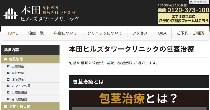 治療は包茎治療実績が3万例以上の本田院長が自ら行い、切らない包茎治療(長茎術・亀頭増大)を推奨している点が特徴です。