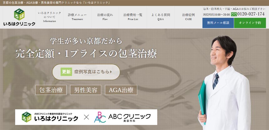 | ABCクリニック京都院 (いろはクリニック) | ★5.0(★4.96:①+②+③+④+⑤の平均) | ★4.8 | ★5:京都院の医師情報の記載が有り、全国23院で15万件以上(年間1,000件以上)の実績 | ★5:比較競合院より安い ABC式CSカット:55,000円 ABC式Sカット:110,000円 ほか 3,30,3プロジェクトで30%OFF | ★5 ・完全予約制 ・男性スタッフのみ ・個室カウンセリングと診療 | ★5 ・アフターケア有り ・追加費用なし(手術前支払い) ・電話相談無料 |