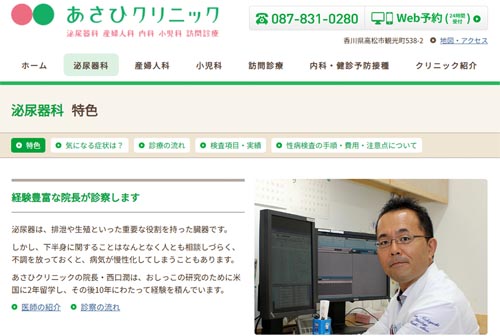 あさひクリニックは、泌尿器科、産婦人科、内科、小児科を標ぼうし、琴電長尾線「花園駅」より徒歩10分の場所にある地域密着の医院です。