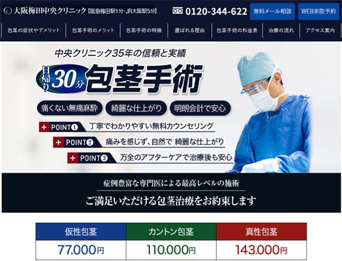 梅田周辺には、メジャーな包茎手術クリニックが多くあります。