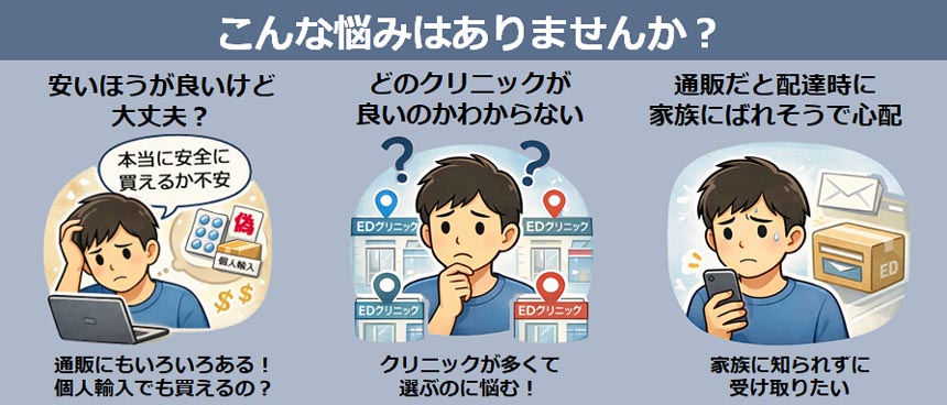 「来院しない=危険」ではなく、医師の診察があるかどうか が安全性を判断する基準です。通販を利用する場合も、診察ありのオンライン診療を選ぶことが重要です。