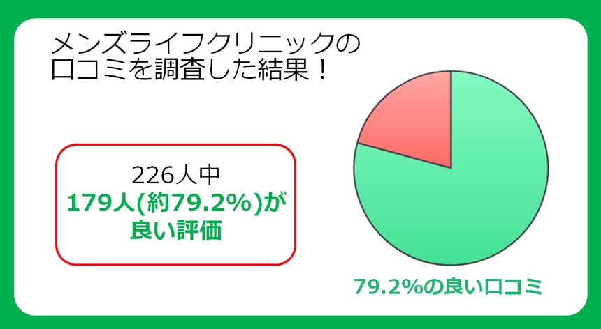 メンズライフクリニックについて、226人の口コミから調査した結果です!