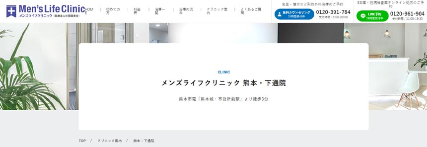 | 公式サイト | メンズライフクリニック熊本・下通院公式サイト |